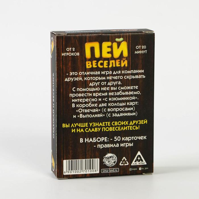 Купить игра для компании "пей веселей" 50 карт от 180 руб. с доставкой до пункта выдачи в Ардатове. Интернет магазин ДекаМаркет. Оплата при получении.